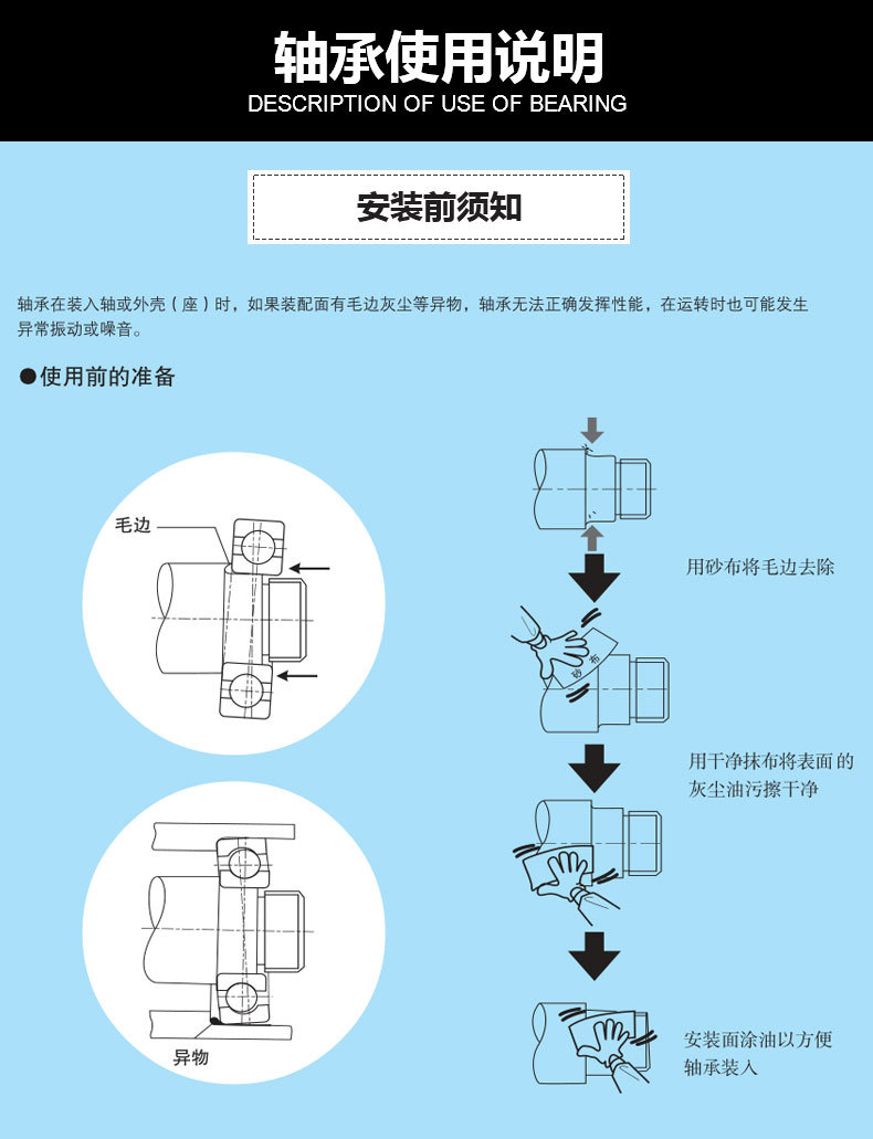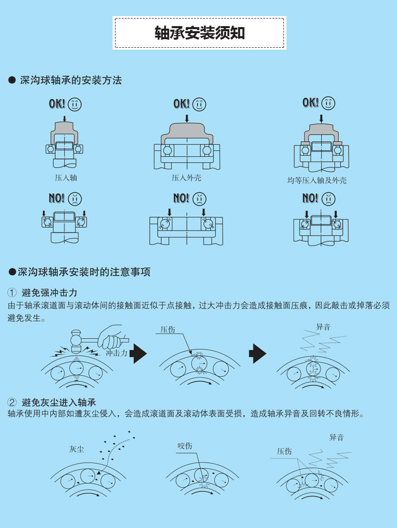 6700系列薄壁深溝球軸承裝在軸上后,在軸承的軸向游隙范圍內(nèi),可限制軸或外殼兩個(gè)方向的軸向位移,因此可在雙向作軸向定位。此外,該類軸承還具有一定的調(diào)心能力,當(dāng)相對(duì)于外殼孔傾斜2′~10′時(shí),仍能正常工作,但對(duì)軸承壽命有一定影響。